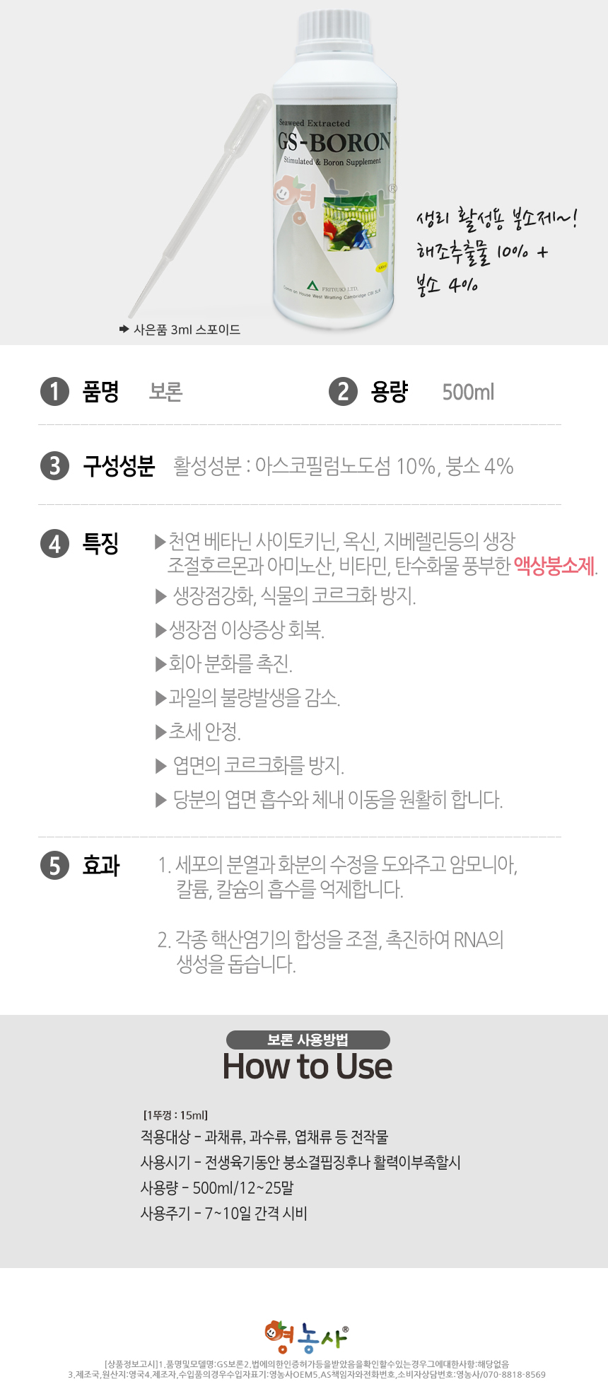 | 품명 및 모델명 | GS보론 | 제조사(수입자/병행수입) | 영농OEM |