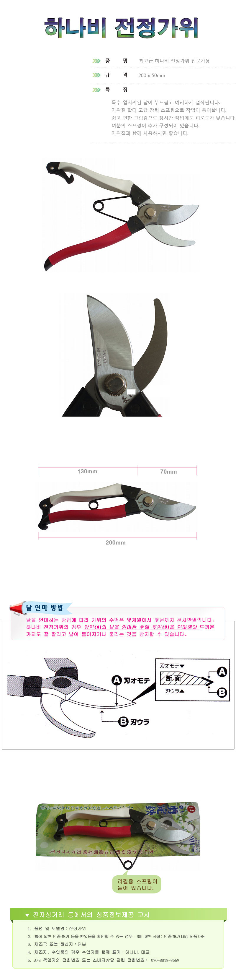 영농사 일제 하나비 전정가위 전지 꼭지 과수 원예가위